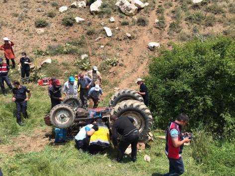 Burdur'da Bademli köyünde Ahmet İşeri'nin (63) kullandığı odun parçaları yüklü traktör, dere yatağından yola çıktığı sırada devrildi.