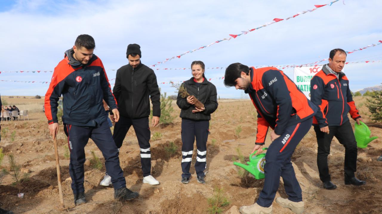Büzdüz köyü yolu Örtülü mevkisinde oluşturulan hatıra ormanındaki fidan dikim törenine Vali Türker Öksüz, Belediye Başkanı Ali Orkun Ercengiz, İl Emniyet Müdürü Ümit Bitirik, İl Jandarma Komutanı Mustafa Güder, Burdur Orman İşletme Müdürü Sefa Karataş ile bazı kurum müdürleri ve çalışanları katıldı.