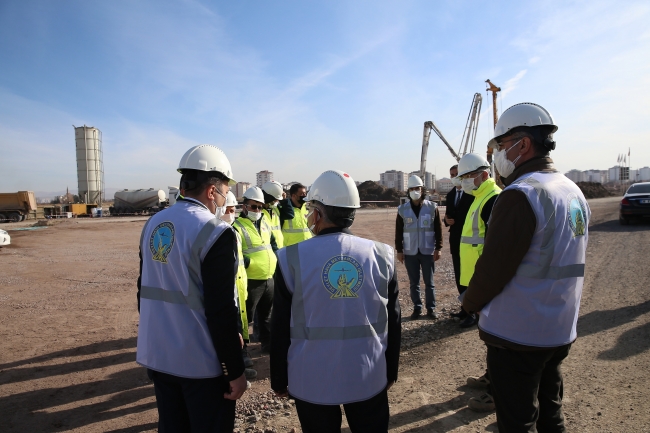 Kayseri Havalimanı yeni terminal binası ve apron yapım projesinin inşaat çalışmalarını inceleyen Büyükkılıç, Devlet Hava Meydanları İşletmesi (DHMİ) Kayseri Havalimanı Genel Müdürü Halil Bektaş ve yüklenici firma TAV Havalimanları ve Sera Yapı Şantiye Şefi Galip Demirci'den bilgi aldı.
