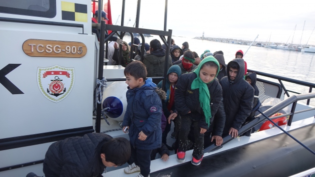 Kadın ve çocukların da bulunduğu Afganistan uyruklu 98 düzensiz göçmen yakalanarak Küçükkuyu beldesindeki Sahil Güvenlik Karakoluna getirildi.