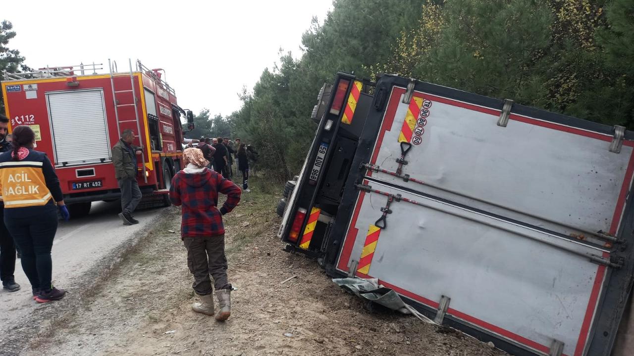 Gelibolu-Eceabat kara yolunda seyreden Tolga Çolak idaresindeki 59 ADU 968 plakalı kamyon, Ilgardere mevkisinde kontrolden çıkarak devrildi.