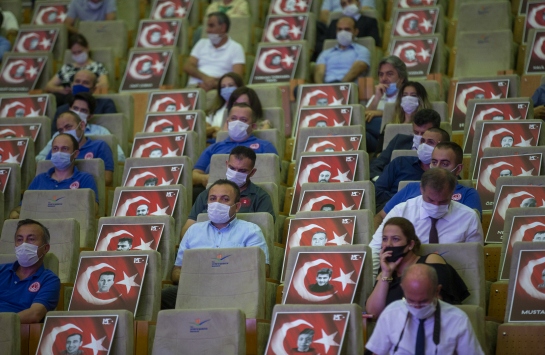15 Temmuz şehitlerinin yakınları ve gazilerin katıldığı programda, salondaki katılımcılar arasındaki boş koltuklarda 15 Temmuz şehitlerinin fotoğrafları yer aldı.