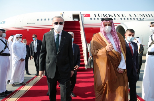 Erdoğan ile Hazine ve Maliye Bakanı Berat Albayrak, Gençlik ve Spor Bakanı Mehmet Kasapoğlu, Milli Savunma Bakanı Hulusi Akar, MİT Başkanı Hakan Fidan, Cumhurbaşkanlığı İletişim Başkanı Fahrettin Altun ve Cumhurbaşkanlığı Sözcüsü İbrahim Kalın da Katar'a geldi.