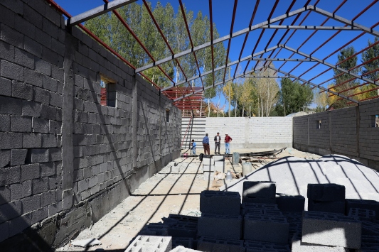 DAP'tan aldığı 100 bin liralık destekle Gürpınar ilçesine 51 kilometre mesafedeki Cevizalan Mahallesi'nde koyunları için 700 metrekarelik ahır inşa eden 28 yaşındaki besici Feyyaz Yıldız, AA muhabirine, 450 küçükbaş hayvanını bu ahırda beslediğini söyledi.