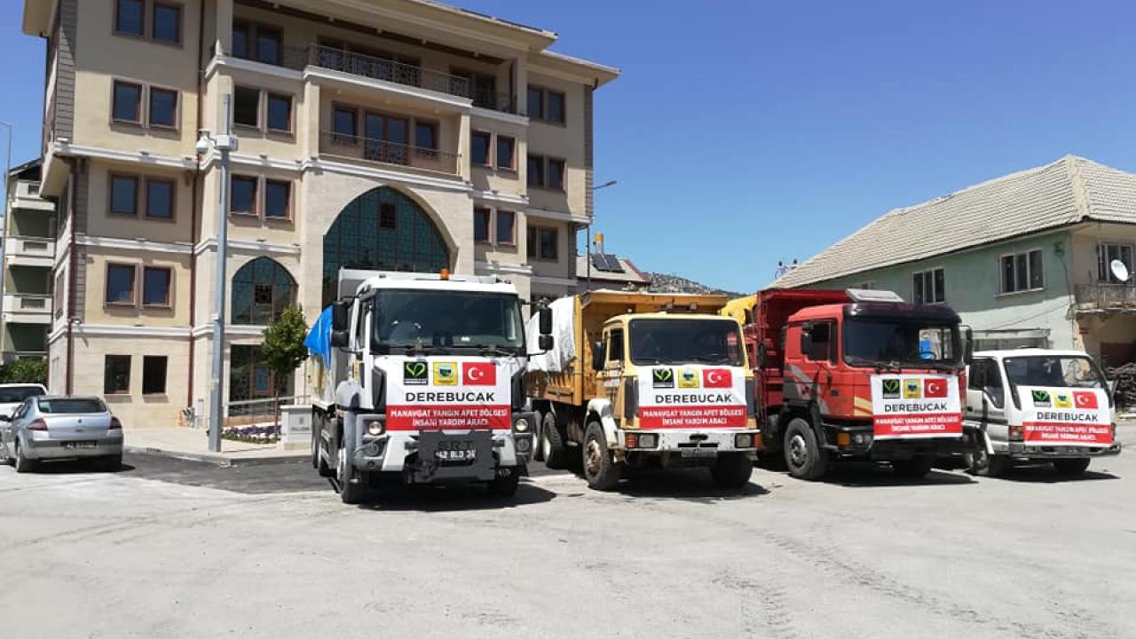 Derebucak Belediye Başkanı Ahmet Kısa, günün birlik ve beraberlik günü olduğunu belirterek, "Hep birlikte Türkiye'yiz. Belediyemiz öncülüğünde Manavgat orman yangını bölgeleri için ilçemizde toplanan yardım malzemeleri araçlarımızla yola çıkmıştır. Halkımıza verdiği büyük destekten dolayı teşekkür ediyor, şükranlarımı sunuyorum." dedi.