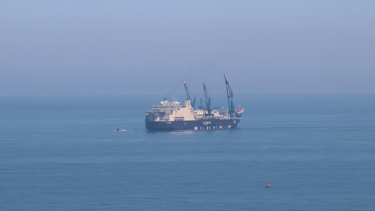 İlk olarak sığ kısımlarda başlayan boru serim işleminde derin denizdeki aşamaya geçiliyor.