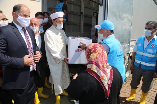 Dağıtım sonrası gazetecilere açıklamalarda bulunan Erbaş, sel nedeniyle kaybolan vatandaşların bir an önce bulunmasını temenni etti.