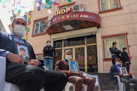 Şırnak'ın İdil ilçesinden dağa kaçırılan oğlu Mahmut için oturma eylemini sürdüren baba Emin Arslan da yeni tip koronavirüse (Kovid-19) karşı aldıkları tedbirlerle evlat nöbetini sürdürdüklerini belirtti.