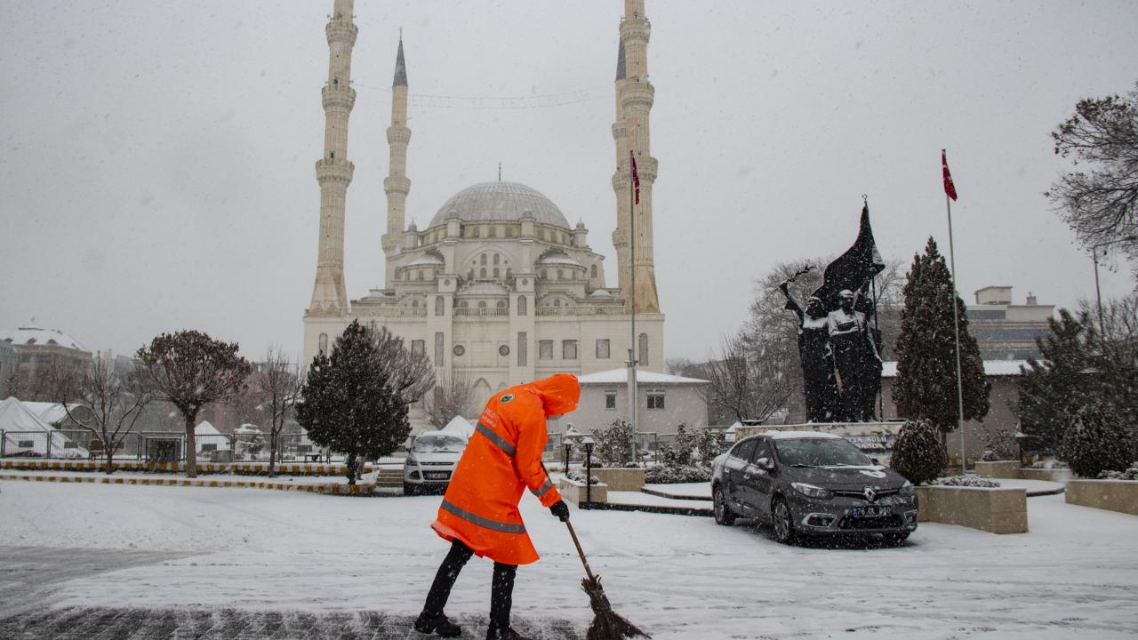 Iğdır'da belediye ekipleri, kent merkezinde kar küreme çalışması başlattı, esnaf ise iş yerlerinin önünü temizledi.
