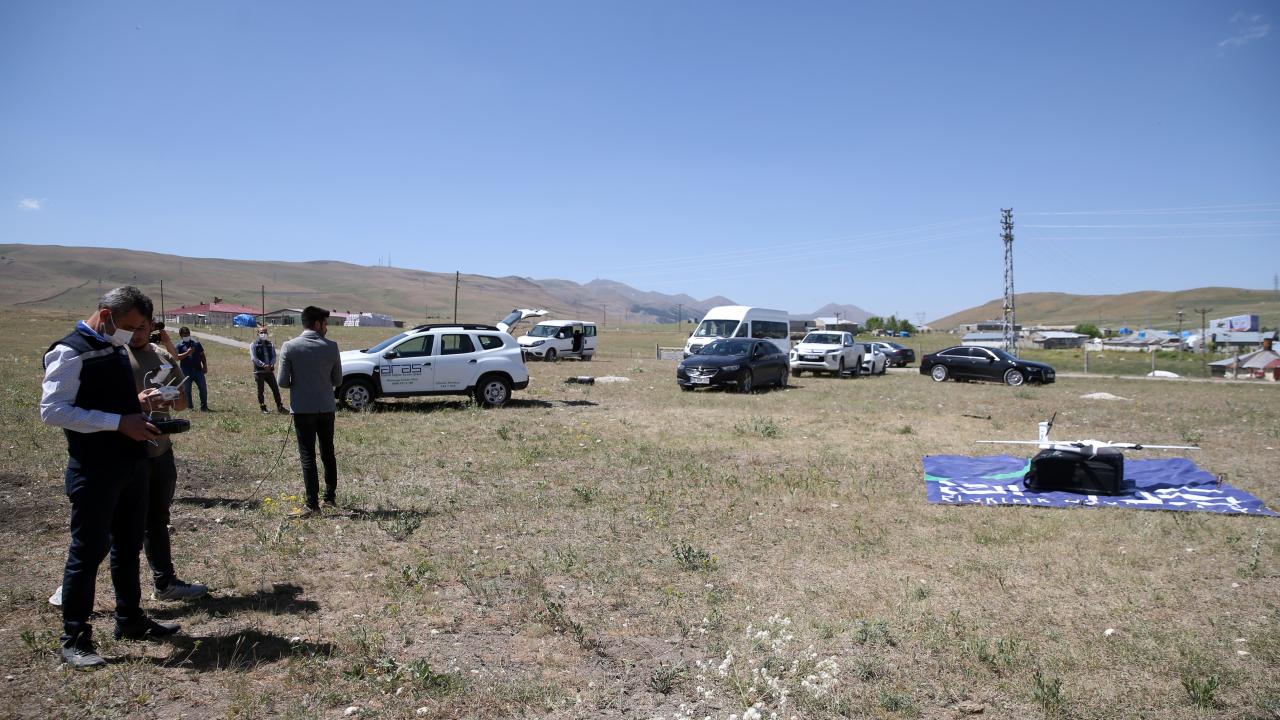 Şirket yetkilileri, Palandöken ilçesinin Nene Hatun Mahallesi kırsalındaki boş arazide düzenlediği programda, envantere eklenen yeni İHA'yı basına tanıttı.