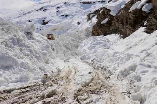 Hakkari'de de kapalı 2 mezra yolu açıldı, karla mücadele ekipleri yol genişletme çalışmalarını sürdürüyor.