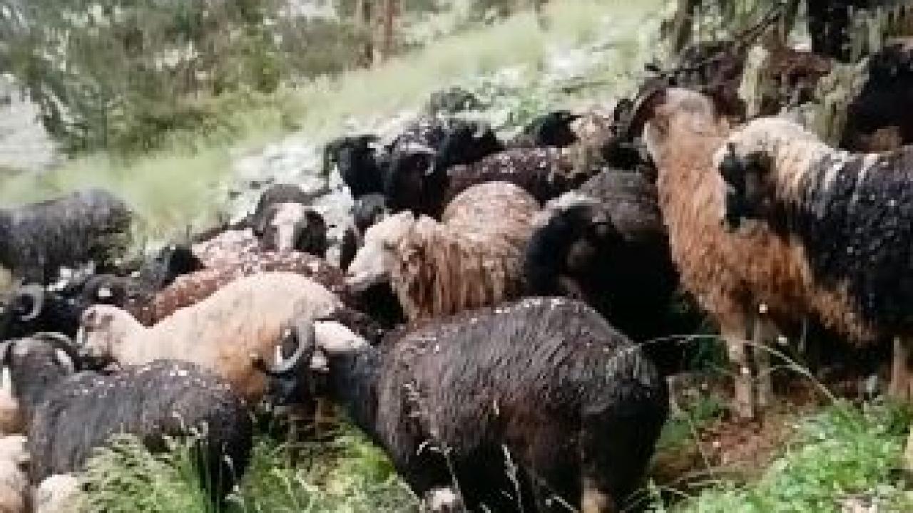 Dolu yağışı nedeniyle zor anlar yaşayan sürü, neye uğradığını şaşırırken oldukları yerde kala kaldılar.
