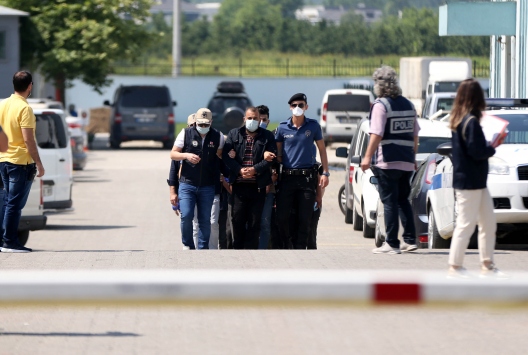 Sağlık kontrolünün ardından adliyeye sevk edilen şüphelilerden birinin görme engelli olduğu, 2'sinin ise koltuk değnekleriyle yürüdüğü görüldü.