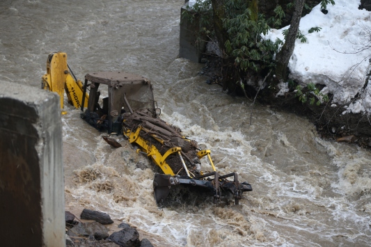 Yılmaz'ın iş makinesinin altında kalmış ya da akıntı ile sürüklenmiş olabileceği ihtimali üzerinde duruluyor.