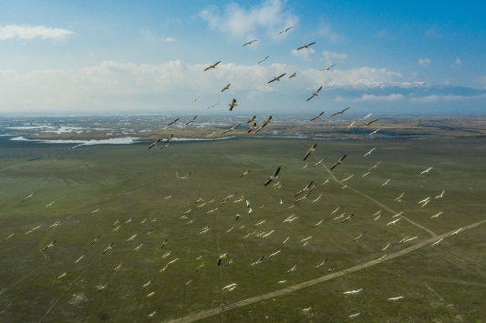 Afyonkarahisar Valiliği Tanıtım Bürosu, pelikan sürüsünü havadan görüntüledi. Pelikan sürüsünün, gölün üzerinde topluca uçuşları güzel görüntüler oluşturdu.
