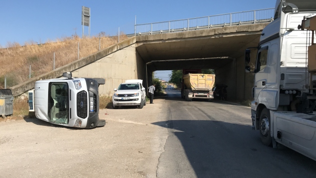 Çarpışmanın etkisiyle minibüs devrildi. Sürücü Baykal çevredekilerin yardımıyla araçtan çıkarılırken, kazada yaralanan olmadı.