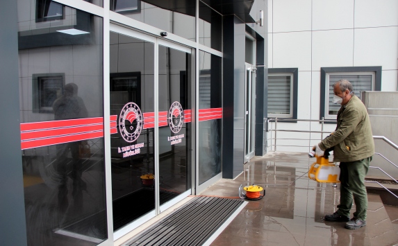Ekipler, tedbirler kapsamında kurumlardaki genel dezenfeksiyon işlemlerini yaparken çalışma odaları, asansör ve kapı girişleri gibi sık kullanılan alanları titizlikle dezenfekte ediyor.