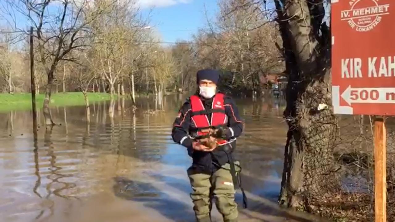 Sarayiçi mevkisindeki Tavuk Ormanı'nda yaşayan sokak hayvanları, taşkın nedeniyle mahsur kaldı.