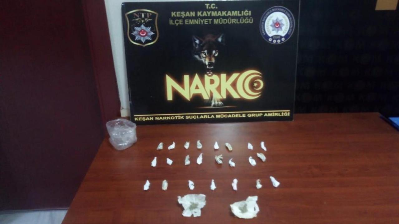 Operasyonda 16,95 gram ve 65 adet kullanıma hazır sentetik uyuşturucu, 51 gramuyuşturucu madde ve 182 poşette satışa hazır eroin, 2,20 gram skunk, 6 hap, pompalı tüfek ve sahte para ele geçirildi.