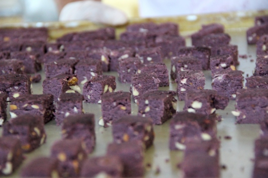 Meriç, 3 aylık deneme üretimlerinin ardından tereyağ, badem, tam buğday unu ve "mor miks" kullanarak "moralize" adını verdiği mor kurabiye yaptı.