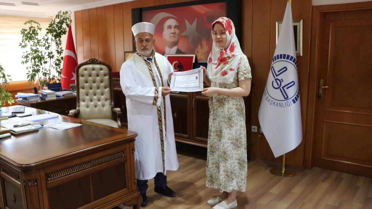 Arkadaşlarının yönlendirmesiyle Müslüman olmak için İl Müftülüğüne başvuran Ya için Müftülük makamında ihtida merasimi gerçekleştirildi.