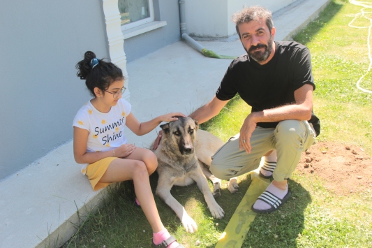 Köpeğin geldiği günden beri peşinden ayrılamadığını vurgulayan Hurma, "Eve giremiyorum. Eve gitmek için kızımı başında bırakıyorum. Onu burada gördüğümüz için çok mutluyuz." dedi.