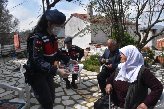 Muğla'nın Menteşe ilçesinde yeni tip koronavirüs (Kovid-19) tedbirleri kapsamında evden çıkamayınca ihtiyaçları için yardım isteyen 80 yaşındaki Emeti Yıldırım, kapısına kadar gelen jandarma ekiplerine ikramda bulunduğu kahveyle teşekkür etti.