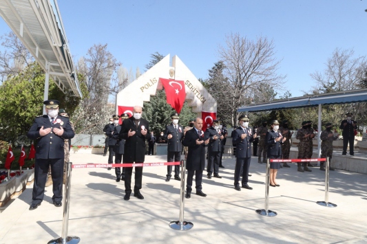 Emniyet Genel Müdürlüğünden yapılan açıklamaya göre, ziyaret kapsamında şehitlerin mezarlarına karanfil bırakılıp dua edildi.