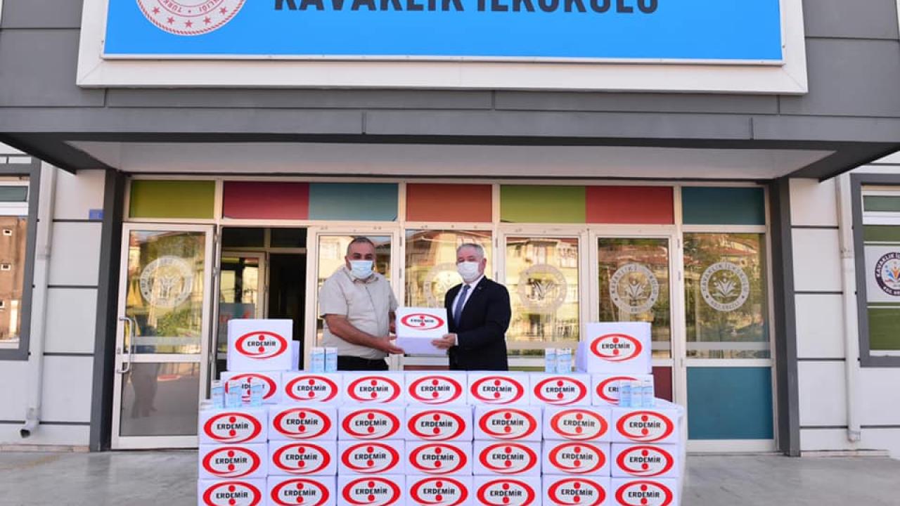 Erdemir'den yapılan açıklamada, yeni tip koronavirüs (Kovid-19) salgını sürecinin en büyük ihtiyaçlarından dezenfektan konusunda ilçedeki okullara destek verilerek, yüz yüze eğitime başlayan öğrenciler ve öğretmenlerin hijyen ihtiyaçlarının giderileceği belirtildi.
