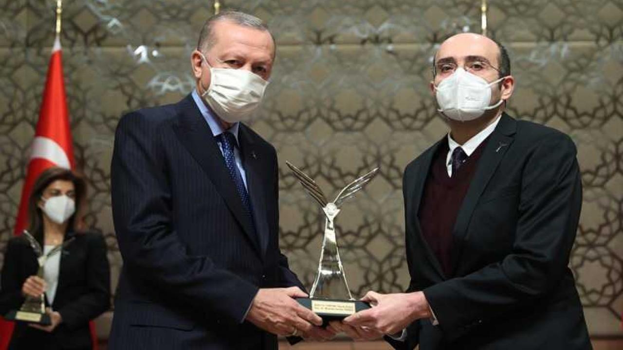 Erciyes Üniversitesi (ERÜ) öğretim üyeleri Prof. Dr. Mustafa Soylak, Prof. Dr. Mehmet Gökhan Halıcı, Doç. Dr. Mustafa Serdar Önses ve Dr. Öğr. Üyesi Fatma Betül Altıntaş'a ödülleri Cumhurbaşkanı Recep Tayyip Erdoğan tarafından tevdi edildi.