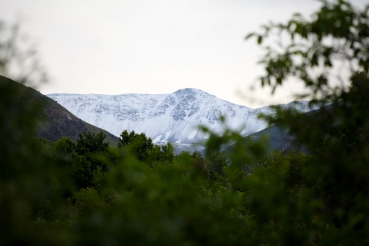 Üzümlü ilçesinde bulunan 3 bin 549 metre yüksekliğindeki Esence Dağı'nın haziran ayında beyaza bürünmesi görenleri şaşırttı.