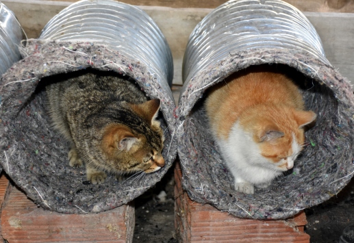 Merkeze bağlı Ahılı köyü yolundaki kullanılmayan hazır beton şantiyesinde bekçilik yapan 70 yaşındaki Köksal, havaların soğumasıyla şantiyedeki 4 kedinin üşüdüğünü fark etti.