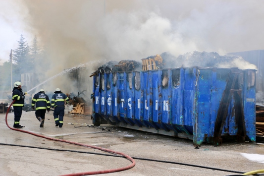 Eskişehir Mobilyacılar Kooperatifi Sanayi Sitesi'ndeki (EMKO) tesiste presleme yapılırken çıkan kıvılcımlar, depo bölümündeki malzemeleri tutuşturdu.