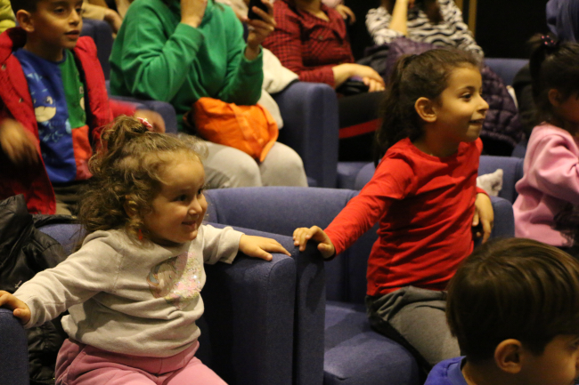Konuşmaların ardından depremzede çocuklar ve aileleriyle birlikte sahnelenen oyunu izledi. Oyunun ardından çocuklara balon ve kitap hediye edildi.