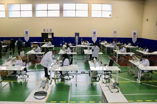 Vali Özdemir Çakacak, Eskişehir Sanayi Odası (ESO) bünyesinde faaliyet gösteren Avrupa Birliği İş Geliştirme Merkezi Eğitim ve Danışmanlık AŞ (ABİGEM) tarafından sanayi kuruluşlarında kullanılacak maskelerin üretimi için Gazi Yakup Satar Mesleki ve Teknik Anadolu Lisesi Spor Salonu'nda oluşturulan atölyeyi gezdi.