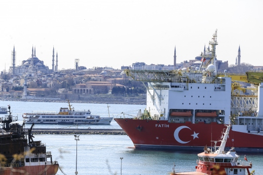 Doğu Akdeniz'deki sondaj çalışmalarının ardından Karadeniz'deki sondaj faaliyetlerine katılmak üzere görevlendirilen "Fatih" sondaj gemisi, Çanakkale Boğazı'nı geçerek dün sabah saatlerinde İstanbul'a ulaştı.