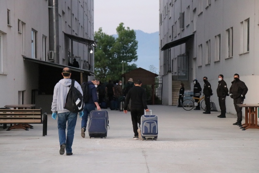 Yoğun güvenlik önlemleri eşliğinde getirilen yolcular, Gençlik ve Spor Bakanlığına bağlı Necla Pekolcay Öğrenci Yurdu'na yerleştirildi. Polis ekipleri de bina çevresinde güvenlik önlemi aldı.