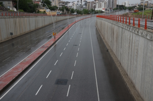 Kısıtlamanın üçüncü gününde, görevliler haricinde kimsenin dışarıda olmadığı Şanlıurfa'da, insan ve araç trafiği en düşük seviyeye ulaştı.