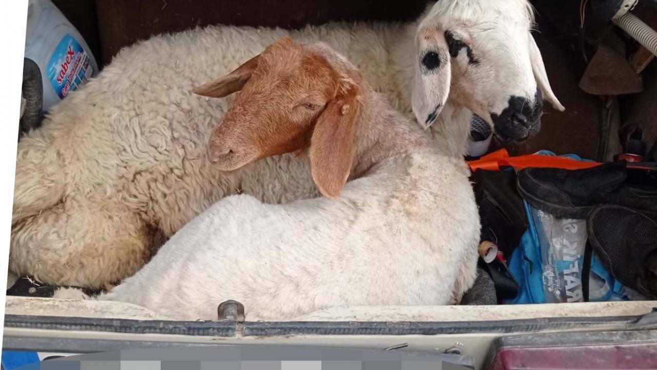 Araçta arama yapan ekipler, çalıntı olduğu belirlenen 2 koyunu ele geçirdi.