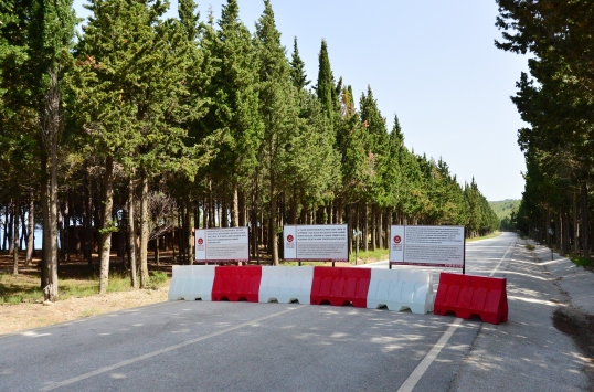 Güvenlik amacıyla trafiğe kapatılan yolun Anzak Koyu'na ulaşımı sağlayan noktalarına Türkçe ve İngilizce uyarı levhaları konuldu.