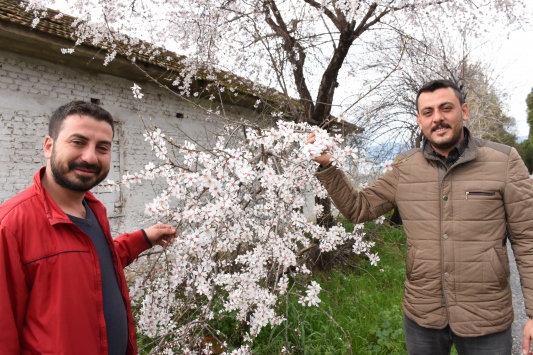 Badem ağaçlarının erken çiçek açması çiftçileri ve görenleri şaşırttı.