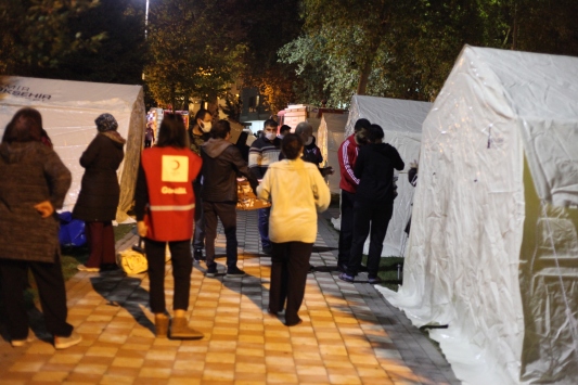 Evlerinde oluşan hasar nedeniyle depremzedeler, geceyi AFAD ve İzmir Büyükşehir Belediyesi tarafından farklı bölgelerde kurulan çadırlarda geçiriyor.
