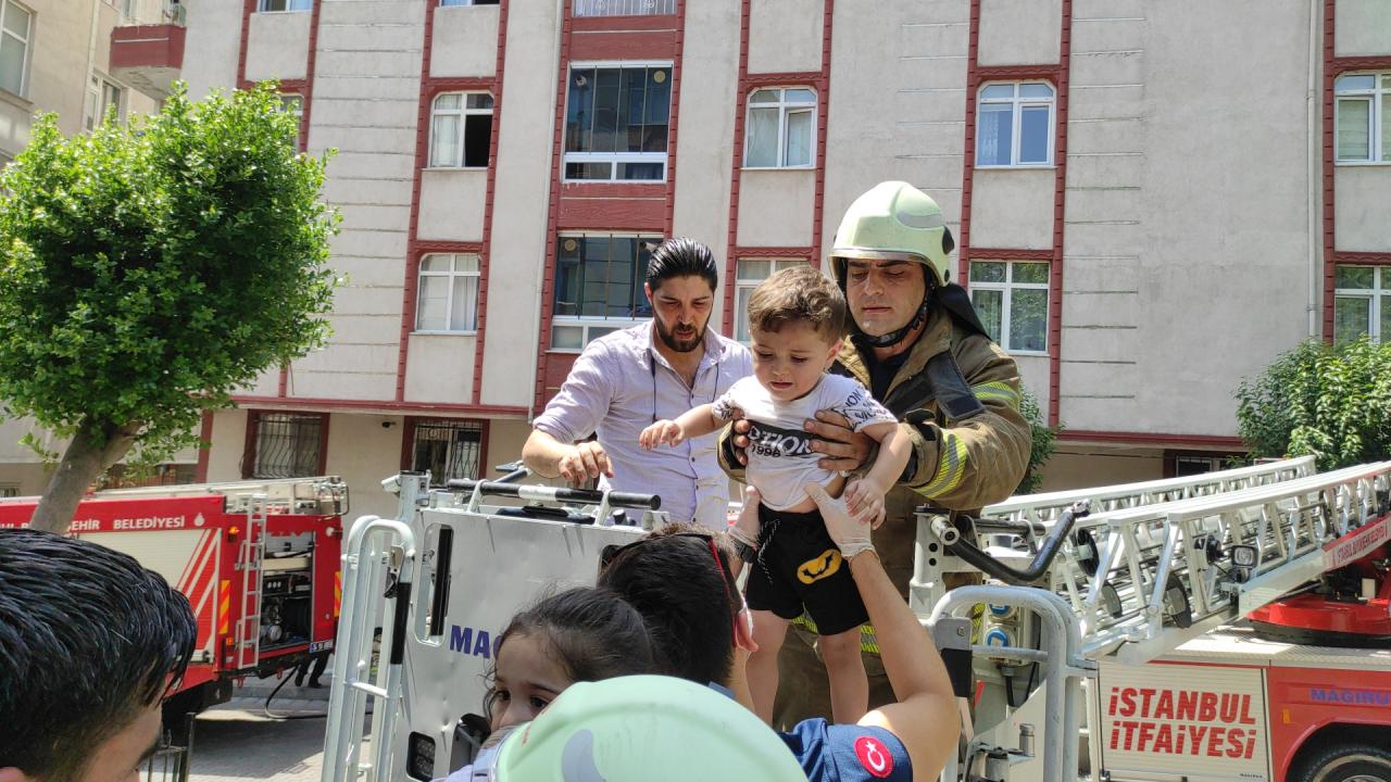 İtfaiye ekipleri, vatandaşları merdivenli araç yardımıyla tahliye ederek yangına müdahale etti.