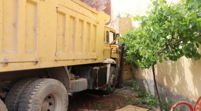 Kayseri Erciyes yolu Hisarcık Meydanı'nda freninin boşaldığı iddia edilen Kadir Çolak yönetimdeki hafriyat kamyonu, bir motosiklet ve 3 araç ile yol kenarındaki evin duvarına çarptı.