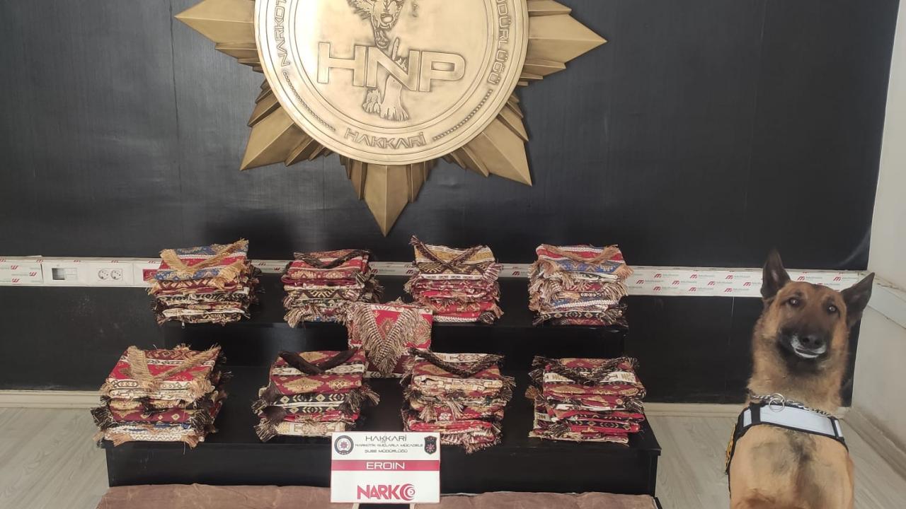 Bu kapsamda Numune Polis Kontrol Noktası'nda durdurulan bir kargo firmasına ait araçta, narkotik köpeği "Ayzek" ile yapılan aramada, 51 yastık kılıfına emdirilerek zulalanan 24 kilo 300 gram eroin ele geçirildi.