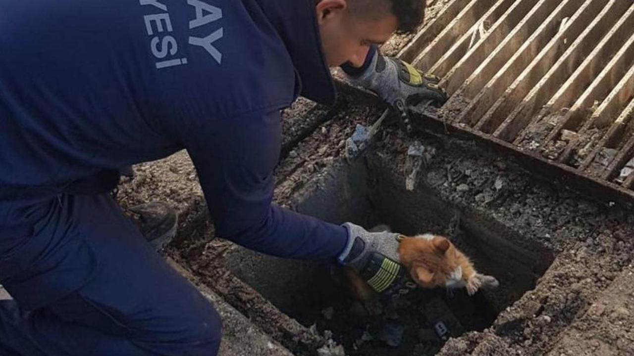 İhbar üzerine olay yerine sevk edilen Büyükşehir Belediyesi itfaiye ekipleri, mazgalı açarak kediyi bulunduğu yerden çıkardı.