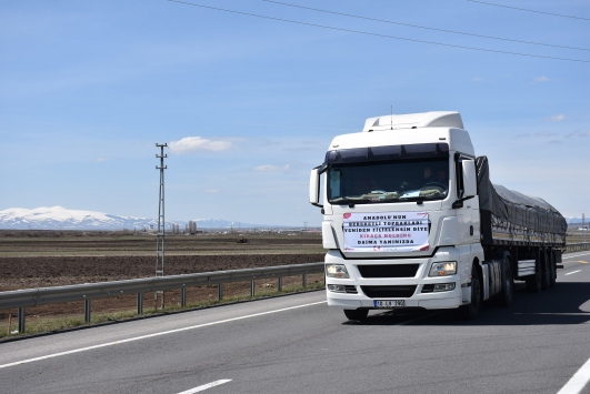 Kars'a gönderilen gübre yüklü 8 tırı, Türkiye Ziraat Odaları Birliği Yönetim Kurulu Üyesi ve Kars Ziraat Odası Başkanı Adem Ertaş ile Digor Ziraat Odası Başkanı İsmet Hagi karşıladı.