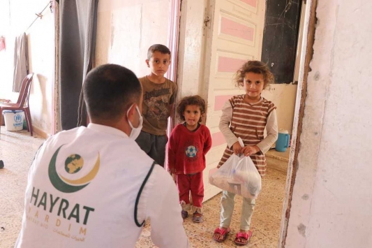 Bu kapsamda Hayrat Vakfı, Tel Abyad'da kurduğu aşevi ile ramazan boyunca 500 aileye iftarlık yemek dağıtıyor.