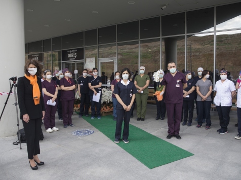 Hollanda'nın Ankara Büyükelçisi Marjanne de Kwaasteniet, Ankara Şehir Hastanesine bağlı Nöroloji-Ortopedi Hastanesinde, sağlık çalışanlarının özveriyle mücadele ettiklerini belirterek, bu nedenle tüm hastane çalışanlarına teşekkür etti.