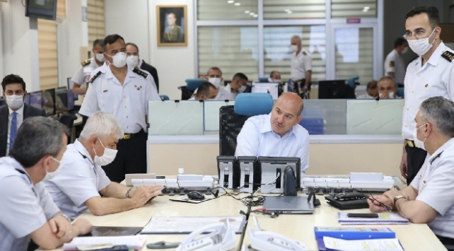 [Fotoğraf: AA]İçişleri Bakanlığının sosyal medya hesaplarından yapılan paylaşımda, "Bakanımız Sayın Süleyman Soylu'nun başkanlığında, Koordinasyon ve Güvenlik Toplantısı öncesi, Jandarma Harekat Merkezi'nde, bölgelerin son durumunun değerlendirilmesi gerçekleştirildi" açıklamalarına yer verildi..